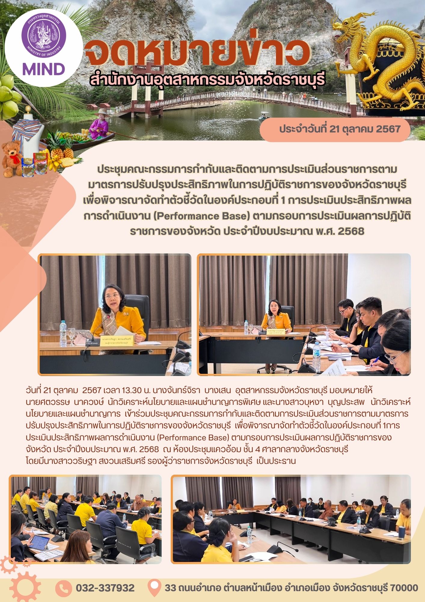 ประชุมคณะกรรมการกำกับและติดตามการประเมินส่วนราชการตามมาตรการปรับปรุงประสิทธิภาพในการปฏิบัติราชการของจังหวัดราชบุรี เพื่อพิจารณาจัดทำตัวชี้วัดในองค์ประ