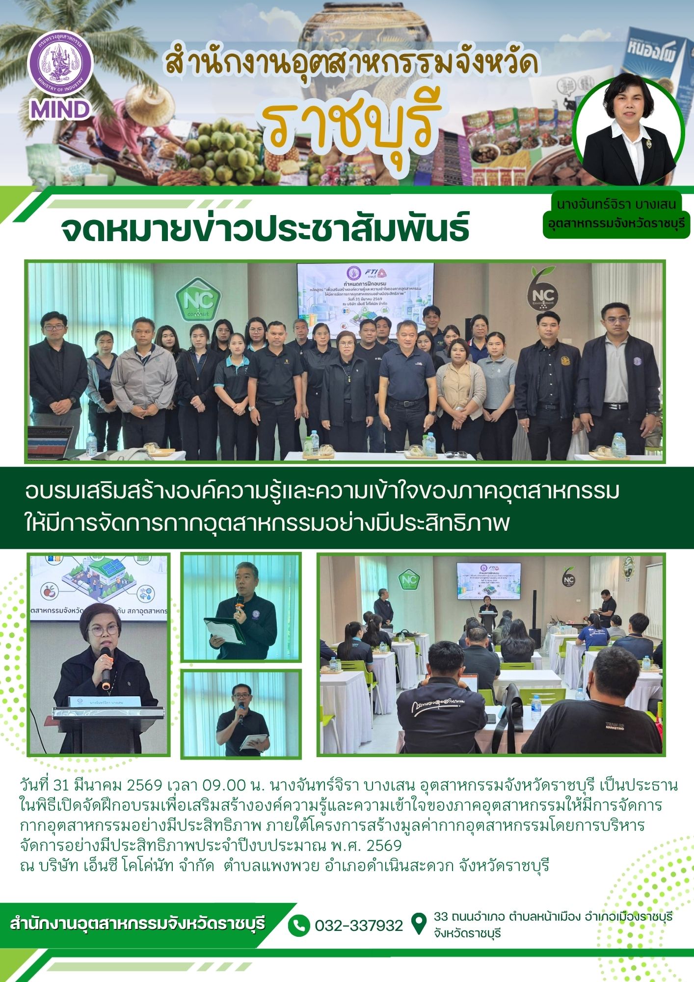 อบรมเสริมสร้างองค์ความรู้และความเข้าใจของภาคอุตสาหกรรมให้มีการจัดการกากอุตสาหกรรมอย่างมีประสิทธิภาพ
