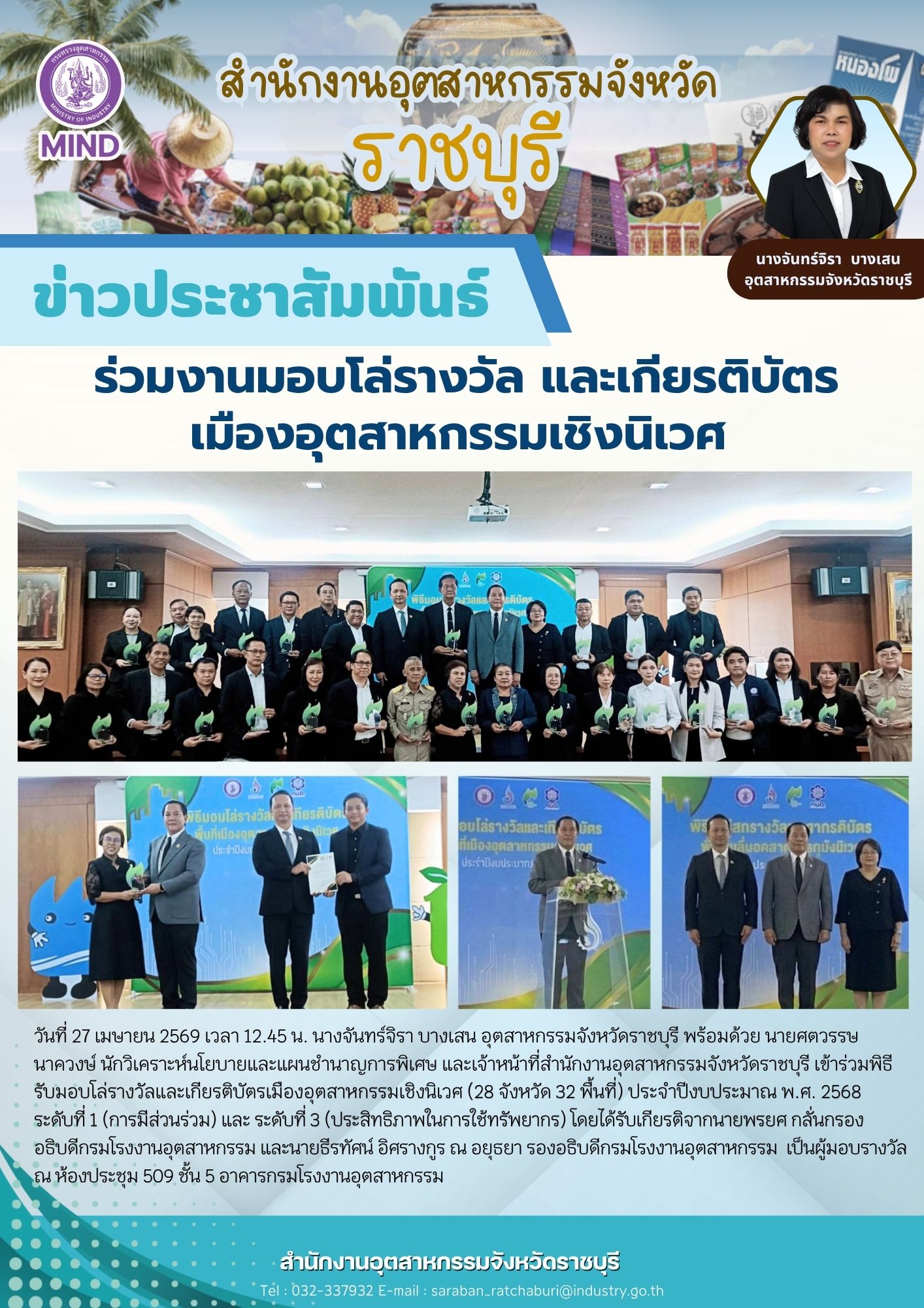ร่วมงานมอบโล่รางวัล และเกียรติบัตรเมืองอุตสาหกรรมเชิงนิเวศ